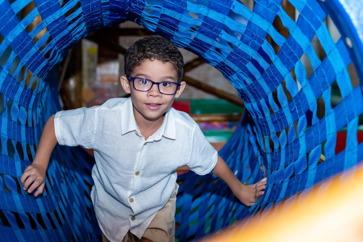 O Bernardo era a própria definição de felicidade! Com um sorriso radiante, ele aproveitou cada segundo da sua festa. Fotografar essa idade é mágico, pois a espontaneidade toma conta. Capturei cliques incríveis dele se divertindo com os amigos no brinquedão, pulando e correndo, e também o momento super especial com o Bob Esponja e o Patrick vivos, que animaram a todos!